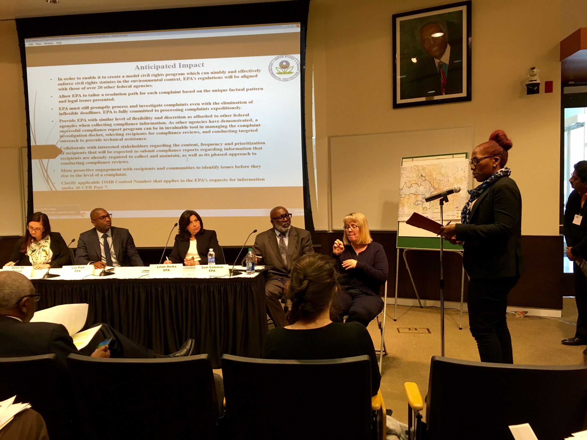 On January 12, Texas Housers Houston co-director Chrishelle Palay testified (pictured above) at an Environmental Protection Agency (EPA) public listening session on civil rights at Texas Southern University. The testimony is below.